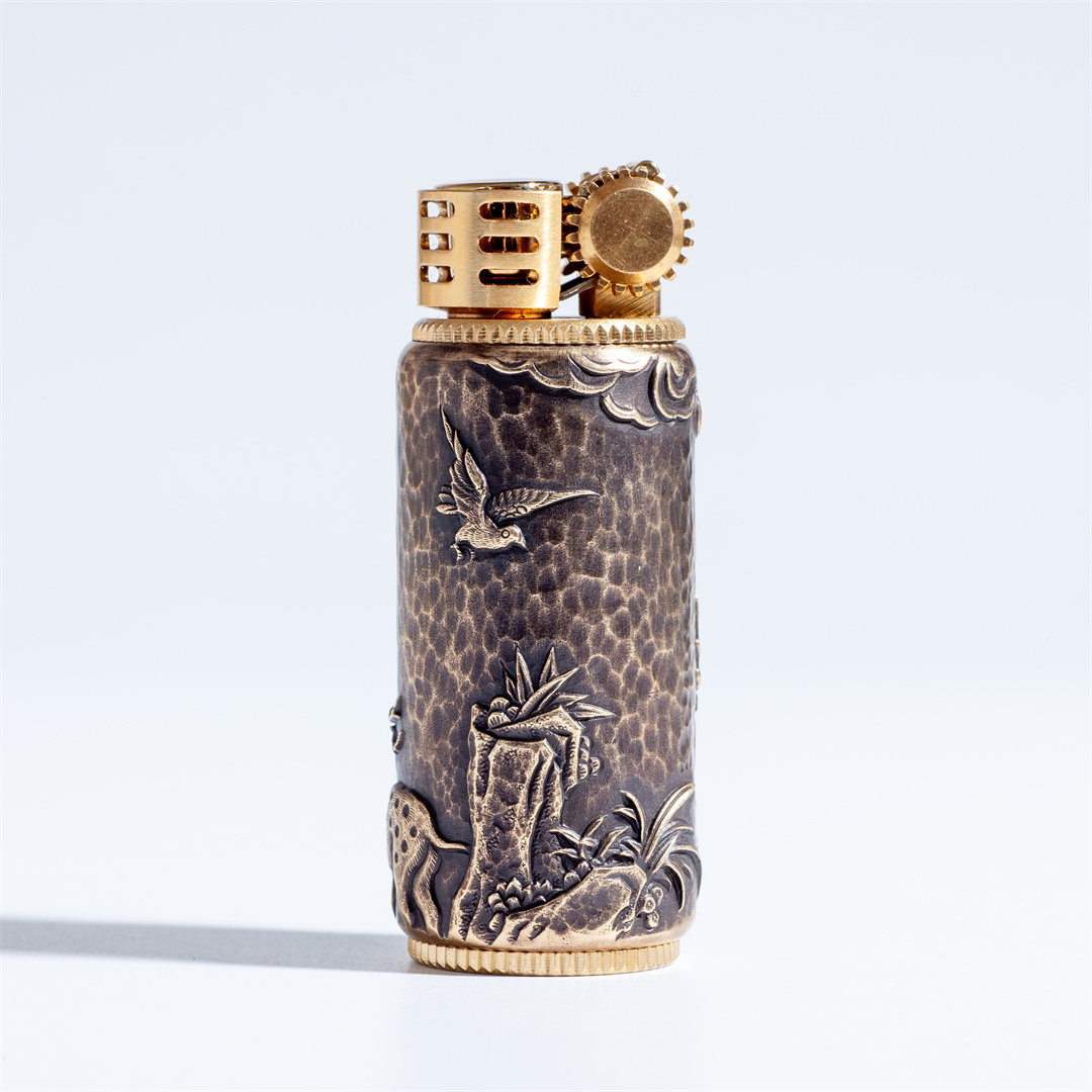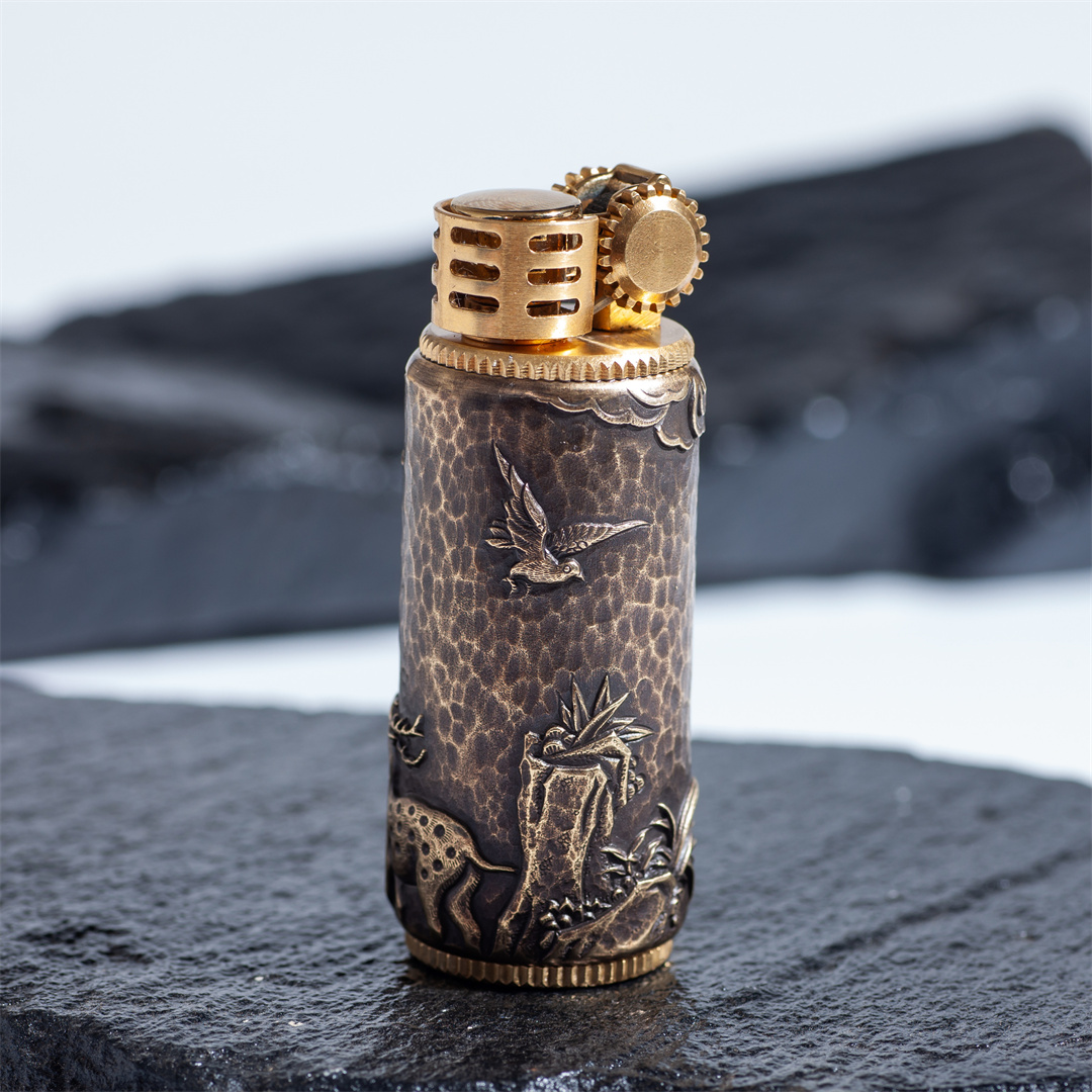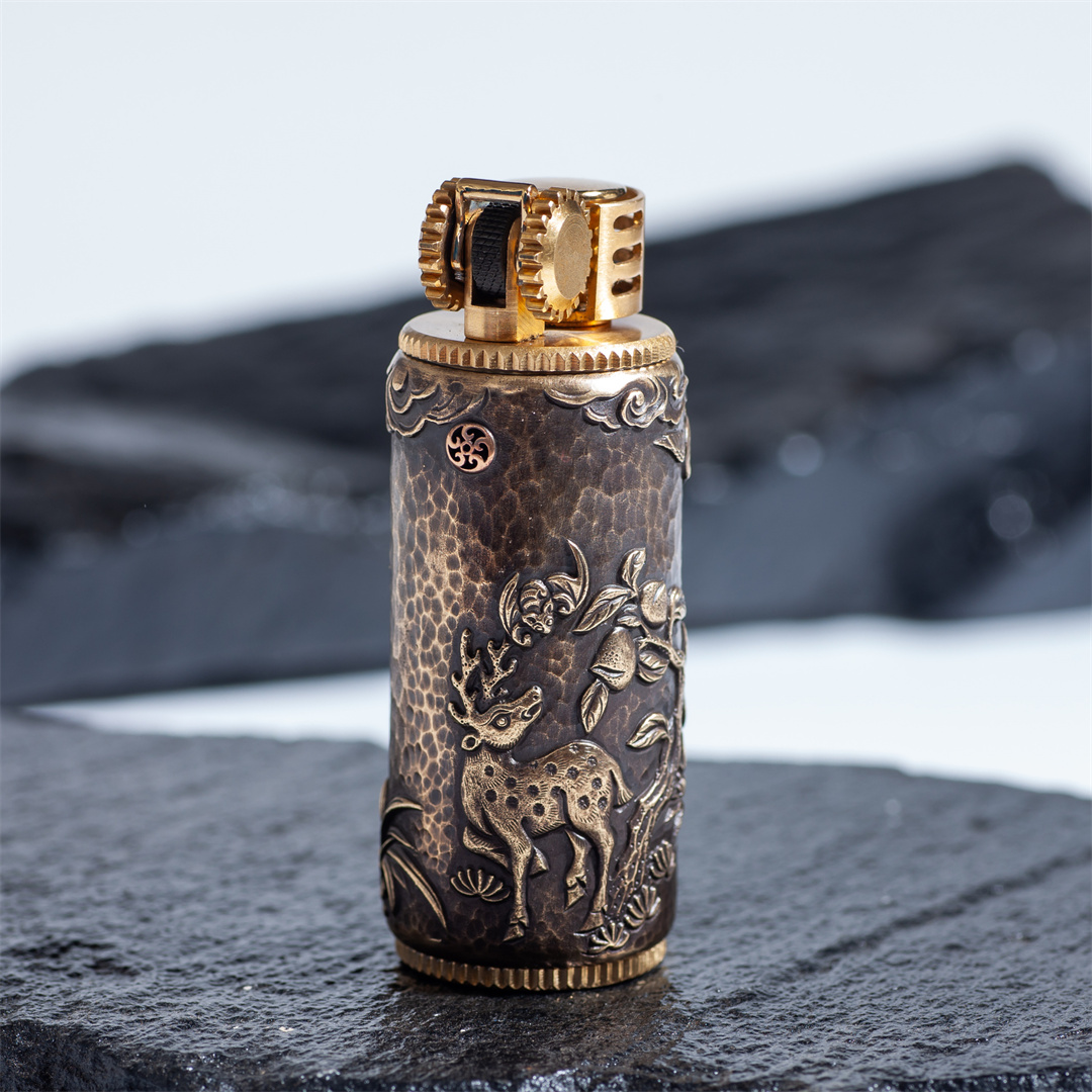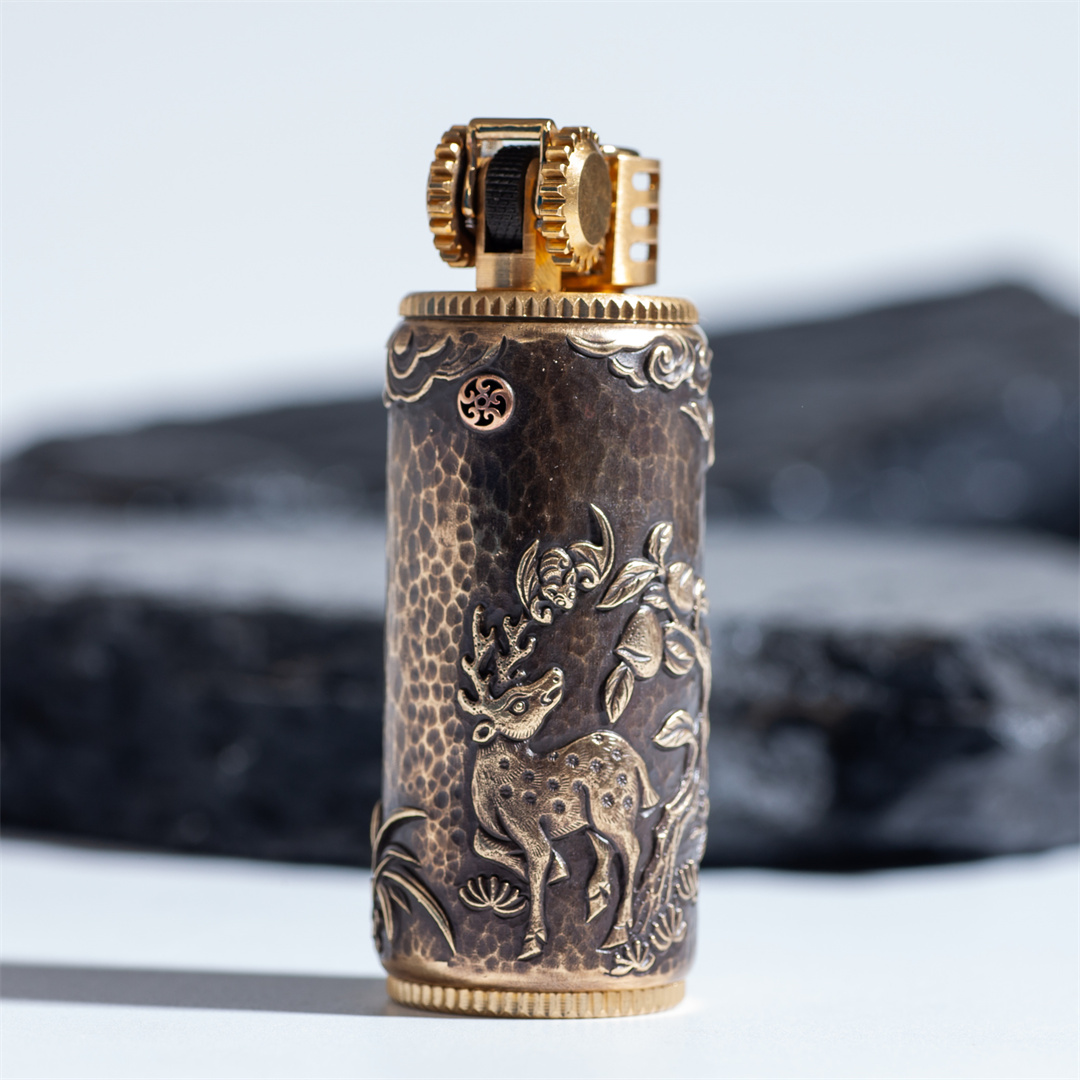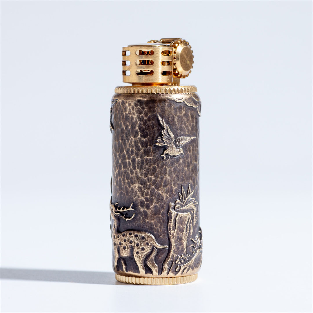 以纯铜为基,融非遗錾刻、浮雕于方寸机身。作品名字取鹿(禄)、桃(寿)、蝙蝠(福)、喜鹊(喜)吉祥四象。一器之上,福至、禄临、寿永、喜临,把东方人对圆满生活的千年祈愿,凝于器中。