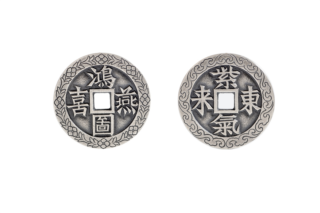 技艺介绍:石雀金工遵循古法、按照古代工艺纯手工雕刻母钱,铸造后手工打磨,修刀。