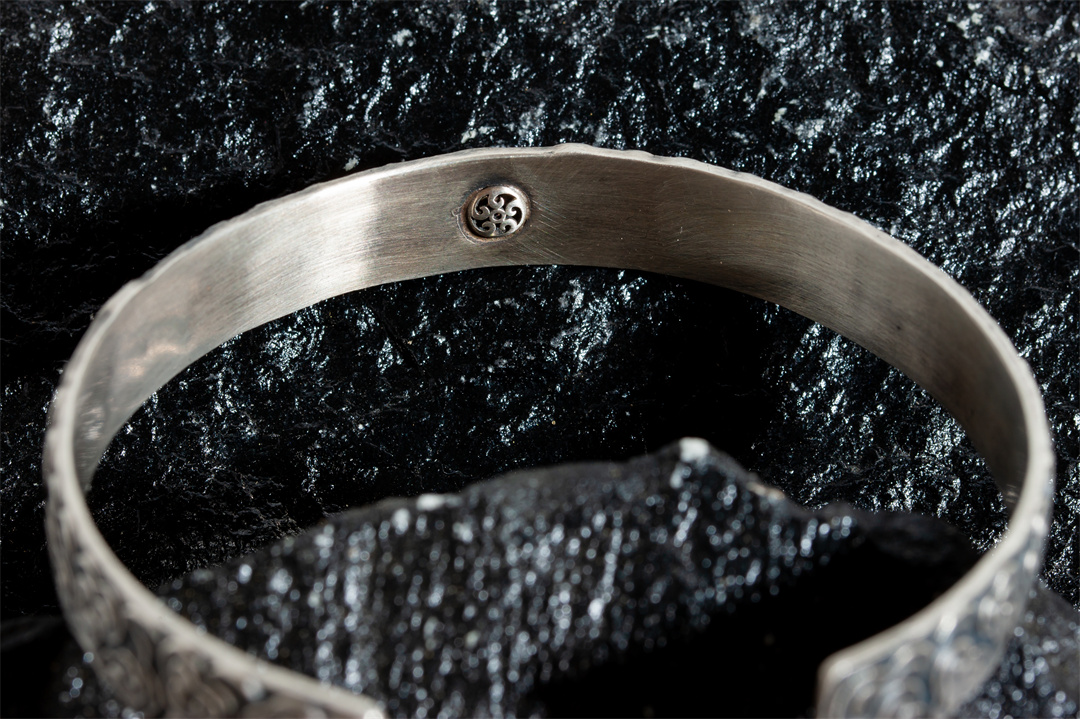 手环宽度约9.2毫米,厚度约1.6毫米(含图案高度),手环内径约(65毫米~52毫米),重约27克(手工作品有少许误差),活口设计,适合手腕佩戴手镯口径为52毫米~62毫米。